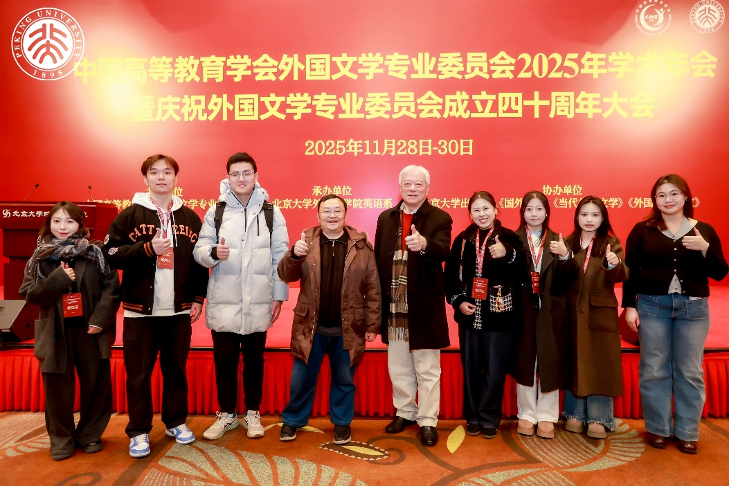 11月28日至30日,中国高等教育学会外国文学专业委员会2025年学术年会暨庆祝外国文学专委会成立四十周年大会在北京大学举行。外国文学专业委员会理事长、我院院长刘树森教授、秘书长骆洪教授、徐志英教授、王文俊教授、徐莎副教授等教师以及研究生共计十余人参会。会议期间,我院多位研究生还作为志愿者协助承担会务工作,受到会议主办单位和承办单位的表扬。自2022年以来,云南大学是外国文学专委会秘书处所在单位。