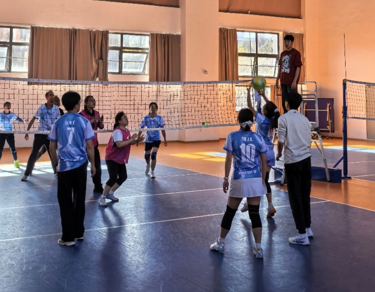本次比赛共吸引五支由学院教职工组成的队伍参加。赛场上,老师们暂时放下繁重的教学与科研工作,化身活力四射的运动健将。一次次默契的传球、一轮轮激烈的攻防、一记记精彩的扣杀,不仅展现出他们课堂之外的飒爽英姿,更在协作与拼搏中传递着欢乐与热情。现场气氛热烈,助威声、欢笑声此起彼伏,冬日的球场因老师们的投入而暖意融融。