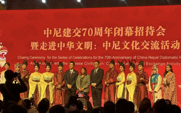 12月27日,“中尼建交70周年闭幕招待会暨走进中华文明:中尼文化交流活动”在尼泊尔首都加德满都举行。尼泊尔联邦议会众议院副议长英迪拉·拉纳、中国驻尼泊尔大使馆临时代办周攀、尼泊尔政府官员、多国驻尼使节及国际组织代表等各界人士出席招待会。我院在尼泊尔留学的2023级尼泊尔语专业学生受邀参与本次高规格外交文化活动,与中尼政要、使节及各界人士共同庆祝,见证了两国友好交往的历程与成就。